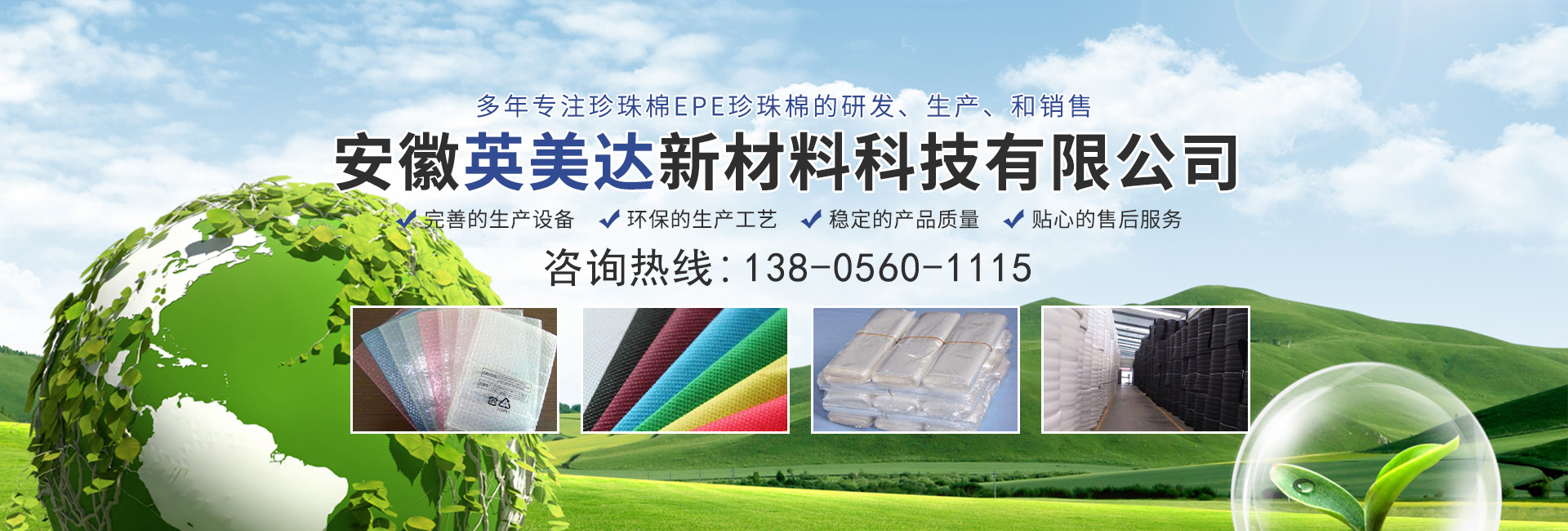 安徽英美達新材料科技有限公司是一家集設計、包裝、服務于一體的專業性服務公司。擁有近10年行業經驗的精英團隊組建而成。公司擁有豐富的包裝材料設計經驗和先進水平的生產設備。主要從事珍珠棉(EPE)及各類包裝材料的設計、生產、加工及銷售和服務。